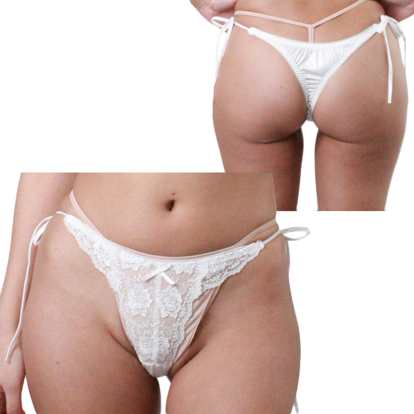 トップページ > ランジェリー > ショーツ > 光沢生地にレース付き脇ヒモTバック Lサイズ ホワイト