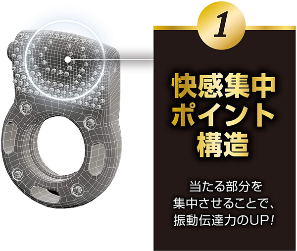 新感覚のペニス用振動リングが登場しました!バイブレーションリングとも呼ばれ、強力振動と特殊ハニカム構造が相乗効果を発揮します♪振動部がしっかり当たる前屈構造で、押し当てることで幅広突起部の多数の面が刺激します。