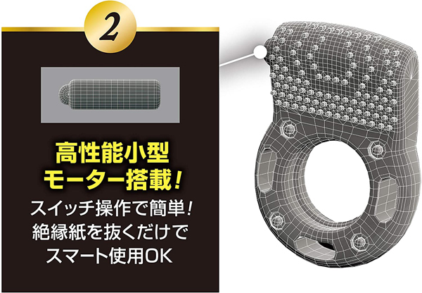 快感集中ポイント構造による高い振動伝達力が特長で、柔らかく伸縮性の高いエラストマー製でフィット感抜群です♪使用は簡単で、絶縁紙を抜きスイッチを入れるだけで直ぐに使えます!振動を集中させることでより快感を味わえるバイブレーションリングをぜひお試しください。