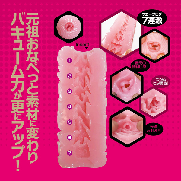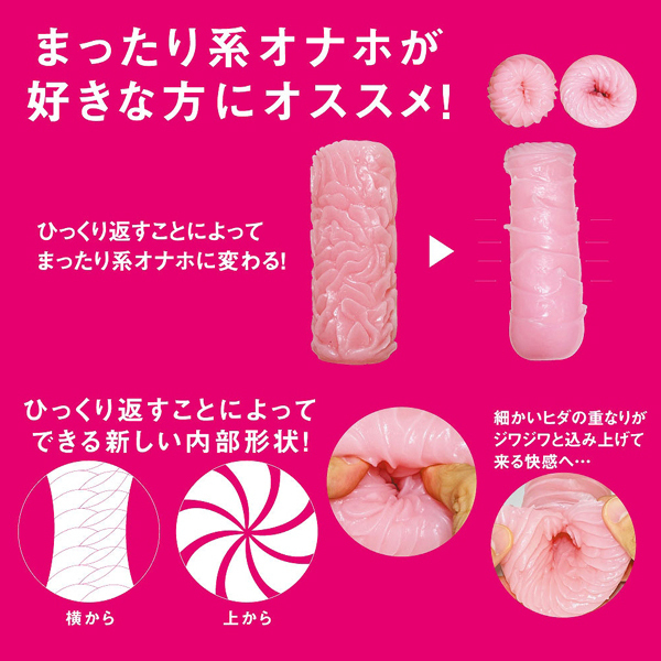 珍しい外観とヒダギミックが魅力の「NaNa(ナナ)」シリーズに、新作の非貫通オナホが登場!もっちりと柔らかな人気素材、元祖おなぺっとを採用したバキューム力抜群の逸品♪7連続するウェーブヒダが絡み締め付け刺激する!まったり感を味わえるリバーシブル構造で、ひっくり返せば裏と表で2度楽しめます。ローション付き、日本製