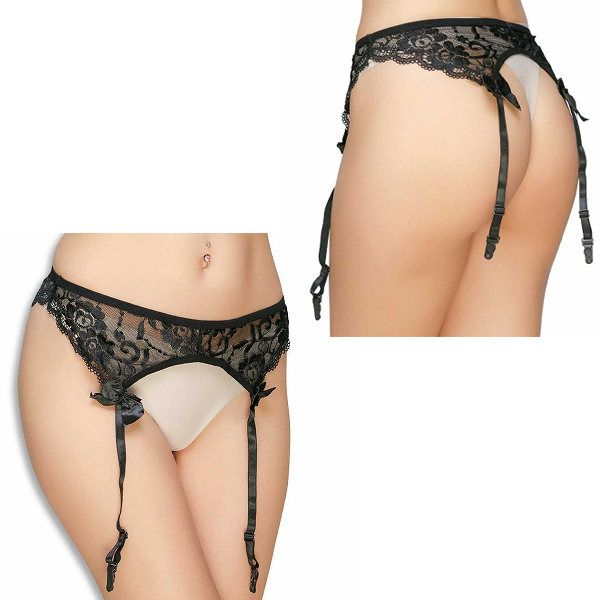 トップページ > ランジェリー > ガーターベルト付 > 定番人気のフラワーレースガーターベルト (ブラック)