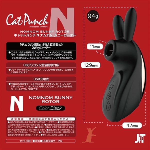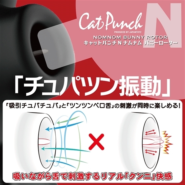 クリや乳首を吸引しながら楽しめる!クリトリスに吸い付いてチュパチュパ振動する「吸引バイブ」が究極進化しました♪吸引穴にソフトシリコンのやわらかい「舌」を設置することで、ちゅっちゅと吸いながらクリトリスを「舌」がツンツンと振動刺激!柔らかい舌が舐め転がしながら敏感になった部分を刺激します♪「ウサ耳」には2個の強力振動モーターを内蔵!吸引だけじゃちょっと物足りなくなってきた人にもぴったりの2wayタイプのローターです。