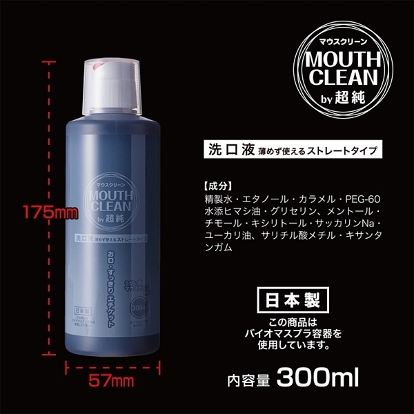 人気の超純シリーズからプレイ前のエチケット商品が登場しました♪薄めずに使えるストレートタイプの洗口液(マウスウォッシュ)で、プレイ前に10〜20mlほど口に含み、約30秒ほど口全体に馴染ませる様にすすぐだけで口の中の嫌な感じを取り除き、さっぱりとした状態でプレイへと臨むことができます。