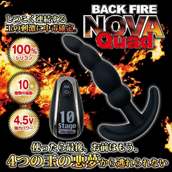 人気のバックファイアシリーズから「バックファイアーNOVA QUAD」が登場!クワッドは座薬ぐらいの大きさの1センチ大の先端から始まり、指のような緩やかなカーブで1.6センチ、2.2センチ、2.1センチの大きさのコブが続く仕様となっています♪全部で4連続の(クワッド)の隆起が続く設計で、内部に密着し緩やかなカーブが、前立線やGスポットなどをダイレクトに刺激してくれるのが特徴です!奥まで入れると入り口付近で強烈な振動と快感を引き起こすスタイルで未知の衝撃と快感を味わわせてくれます♪カラーバリエーションはブラックとピンクでこちらはブラックとなります。