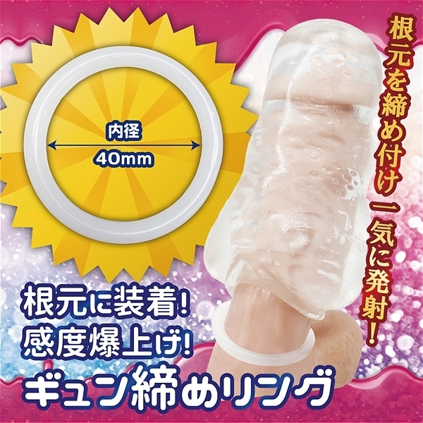 とろけるゼリーのようなホールと、ギュッと締めるリングの快感満点セット!とろけるやわもちホールと感度爆上げのギュン締めリング、さらにたっぷり楽しめるローションが付属。