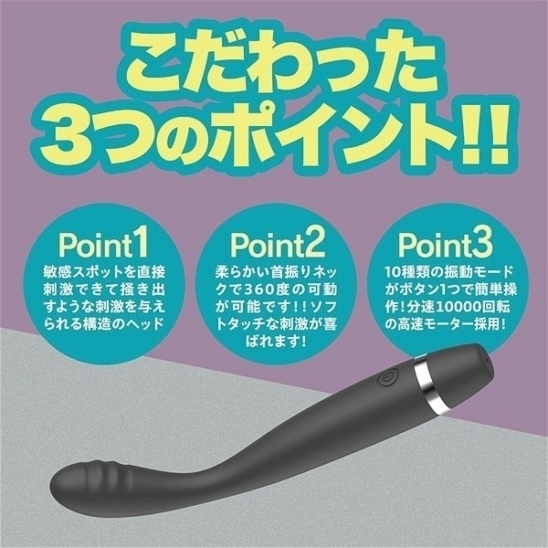 360度フレキシブルに動かせる為、好きなところへ直接届くシリコン素材のスティックローター。1分間で超高速10000RPMの超振動でありながら静音性にも優れています。フル充電から約60分の連続使用も可能です。生活防水設計の為、使用後は丸洗いも可能なため清潔にご使用いただけます。●カラー:ブラック