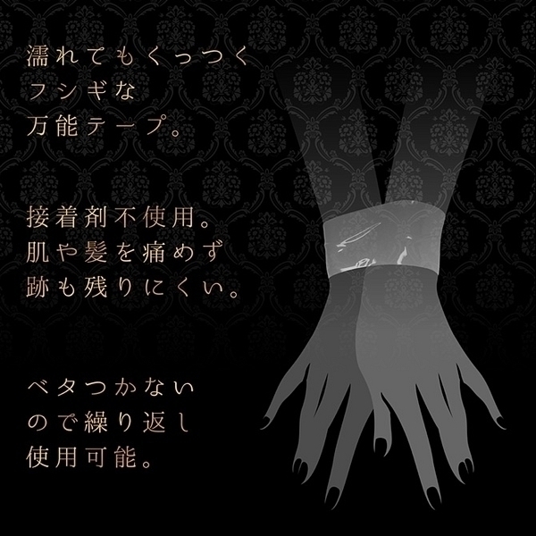SMプレイの必須アイテム<ボンデージテープ>!気分で色を変えたいお客様の声にお応えし女体を彩る業界最多の7色をラインナップ!ノリを使わない万能テープで服や髪・肌を傷めず、お手軽カンタン拘束プレイ!濡れてもくっつく不思議な万能テープ科学の力でテープ同士が吸着。ベタつかないので片付けも簡単。髪や肌、繊細なグッズやテーブルにも安心して使えます。●カラー:シルバー