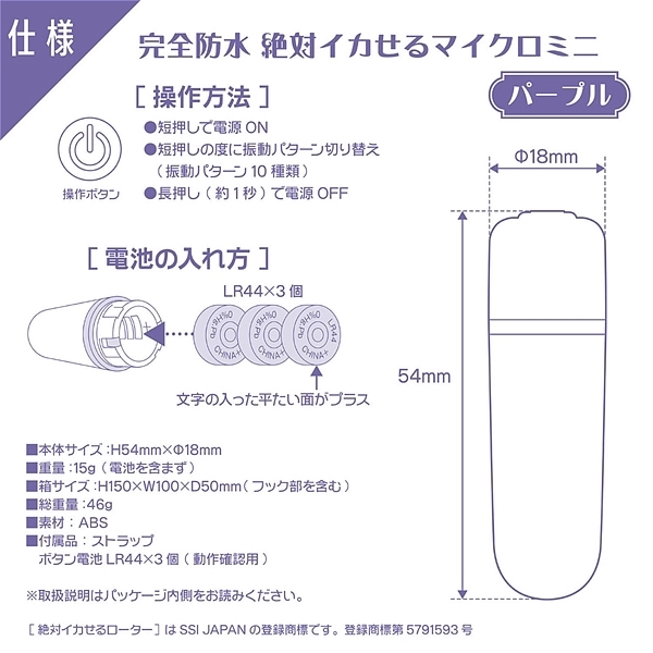 トップページ > ローター > 防水・水中 > 完全防水 絶対イカせるマイクロミニ (パープル)
