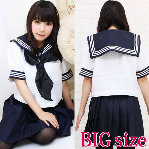 スタンダードなデザインの白×紺の上下に、スカーフもセット!一式揃ったセーラー服のコスプレ衣装です。