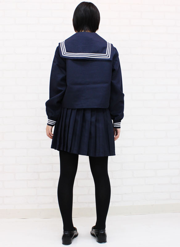 スタンダードなデザインの紺一色の上下に、スカーフもセット!一式揃ったセーラー服のコスプレ衣装です。