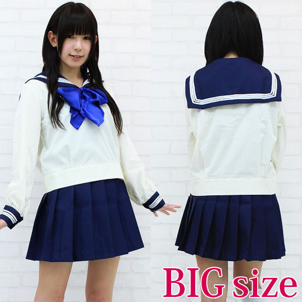 青いリボンが爽やか!キュートな長袖セーラー服コスプレ。