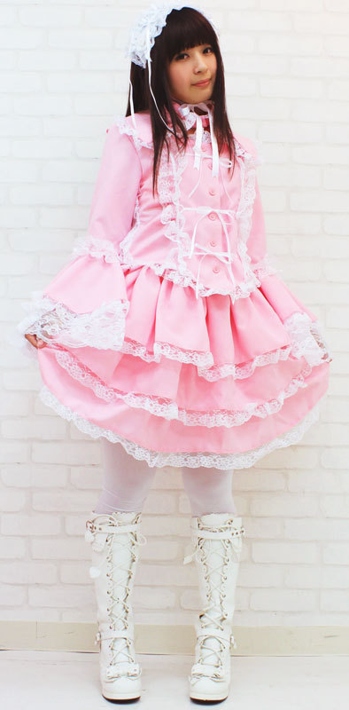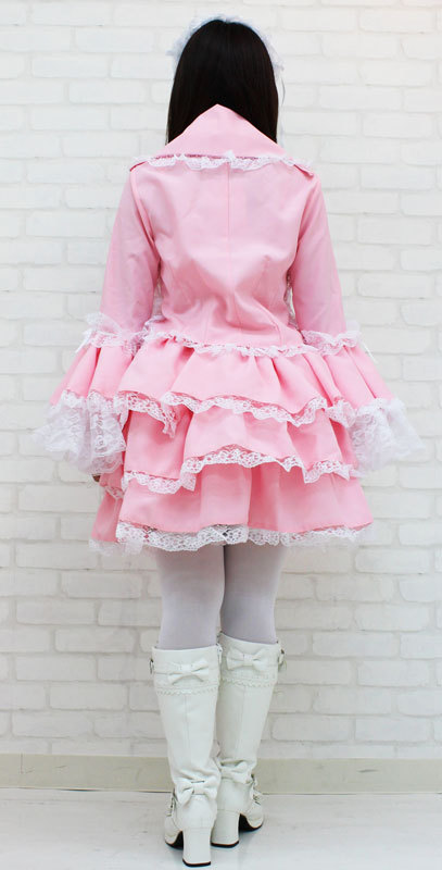 たっぷりのフリフリレースでボリューム感を持たせた、ピンクのチュールメイド服(M)。