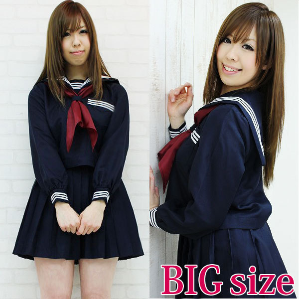 コスプレ衣装の王道!シンプルなのにとっても可愛い紺色の長袖セーラー服(BIG)。