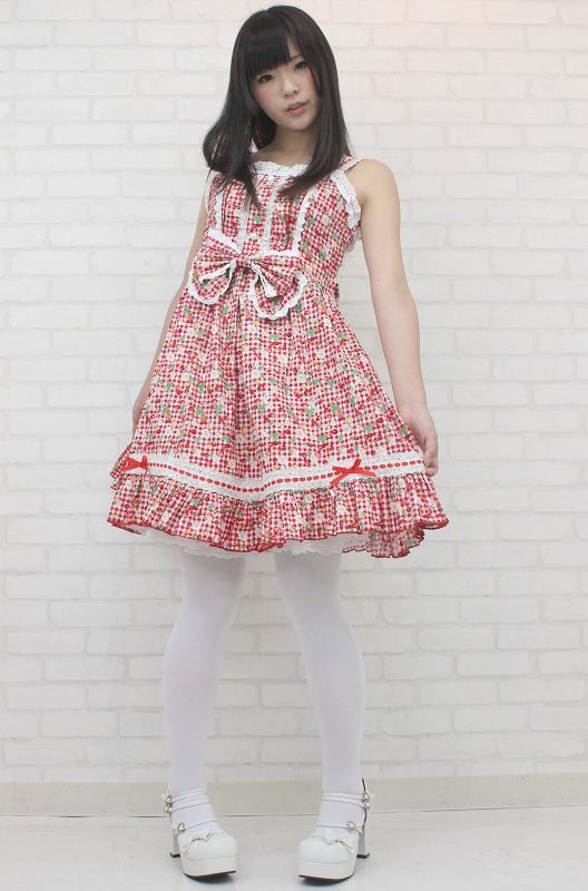 真っ赤なチェリー&ベリーでキュートに仕上げた、ギンガムチェックのジャンパースカート(M)。