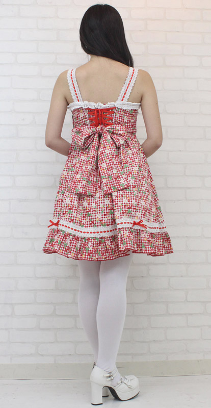 真っ赤なチェリー&ベリーでキュートに仕上げた、ギンガムチェックのジャンパースカート(BIG)。