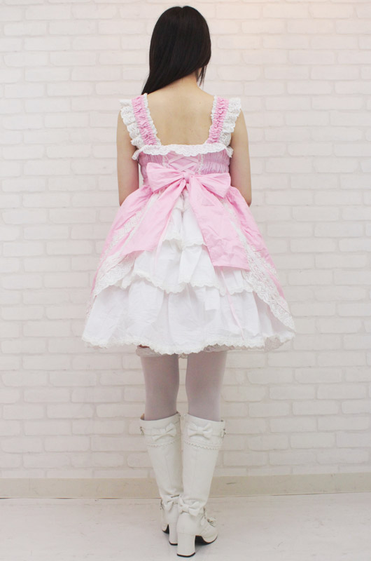 甘〜いロリピンクが可愛い!豪華なフリルレースで仕上げたシャーリングジャンパースカート(BIG)。