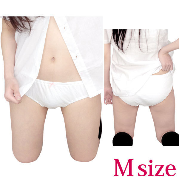 真ん中に付いたピンクリボンがキュートな純白の綿パンツ(M)。