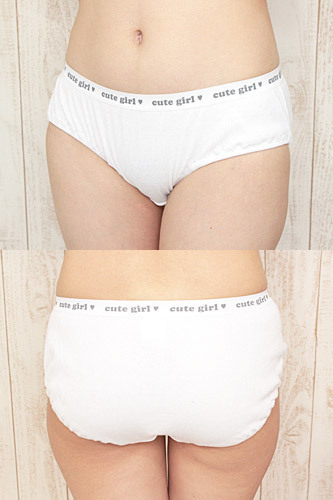 プリティガールに変身!純白リブ編み仕様の綿パンツ単品(M)。