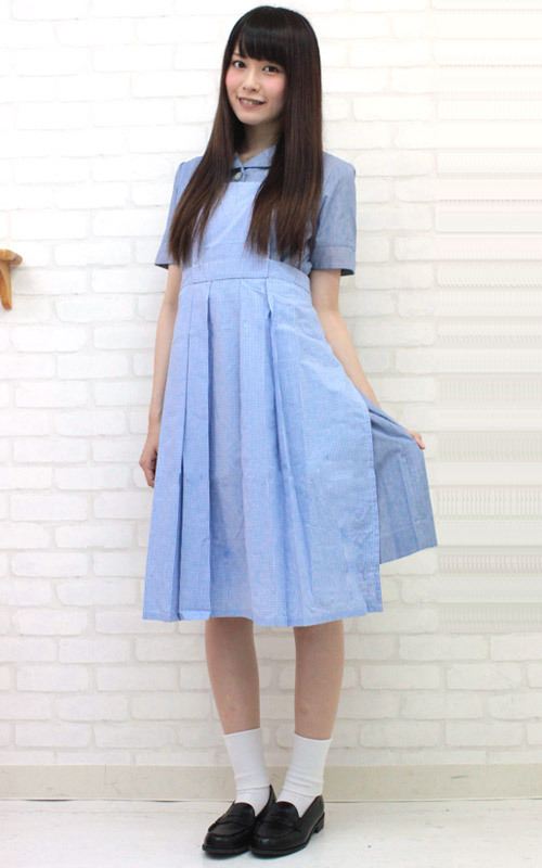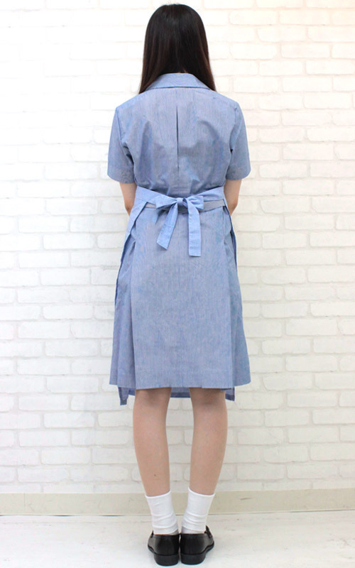 しっかりと作られた本格派仕様!清楚な水色ワンピースと校内着用のエプロンもセットになった、お得な制服コスチュームです。