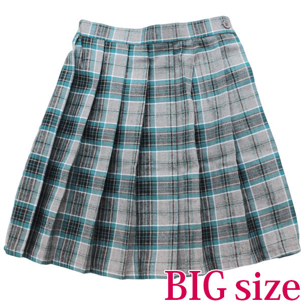 女子校生コスプレで大活躍!お洒落なターコイズブルー×グレーのラメ入りチェック柄プリーツスカート(BIG)。