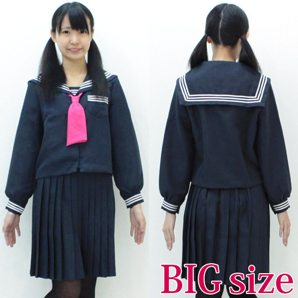ネイビー×プリーツスカートがお嬢様風!シンプルが一番可愛いと思わせる、定番セーラー服の冬服コスチューム。