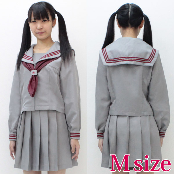 ちょっぴり珍しいグレーカラーで個性をプラス!冬服仕様の長袖セーラー服コスチューム(Mサイズ)。