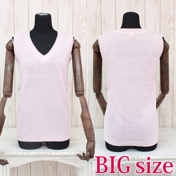 寒い季節にお役立ち!どんな制服コスプレとも、どんなファッションとも相性抜群なニットベストに、ぽっちゃり体型の方でも安心して着られるBIGサイズが登場!女性が好きなキュートピンクのニットベスト(単品)。