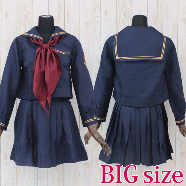 あの有名な女学院の冬制服に、男性でも着られるBIGサイズが登場しました!真っ赤な長いスカーフに、丈の長いプリーツスカートがポイント。
