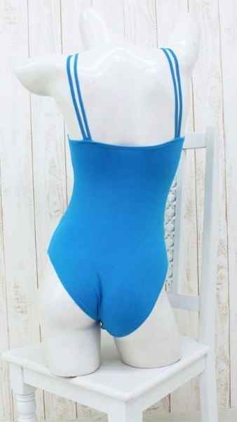 キレイで涼しげなブルーカラーのキャミソール風レオタード(M)。