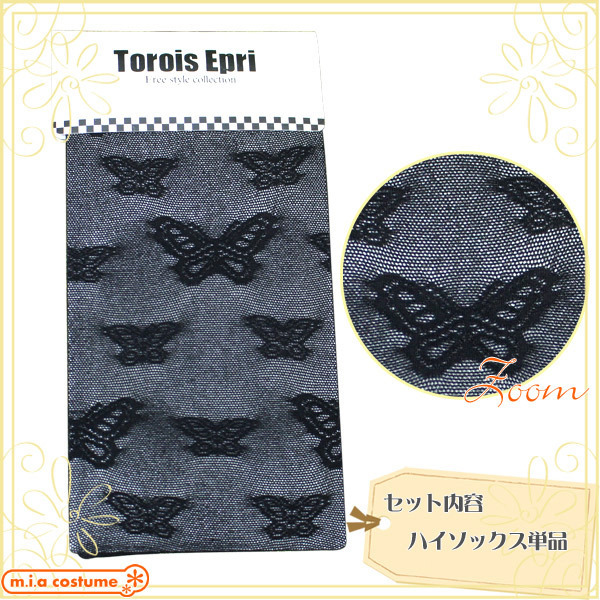 トップページ > コスプレ衣装 > 小道具(ニーソックス・猫耳) > 蝶柄ハイソックス 黒 フリーサイズ
