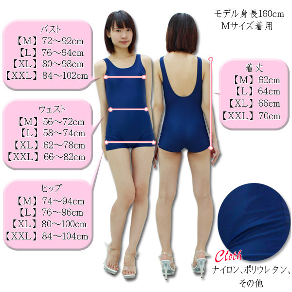 安心縫製の裏地&パッド付き♪ズボンタイプの本格的なスクール水着コスチューム(Lサイズ)。王道の紺色スク水!ズボンタイプなので気になる部分もカバー出来ちゃいます。前身頃全面に裏地&胸部にパッドを付けたしっかり縫製の本格仕様で、夏のプールにも撮影の被写体用コスプレにもぴったりです。※液温30度洗濯可、漂白剤による漂白不可、アイロン・タンブル乾燥不可、ドライクリーニング不可。
