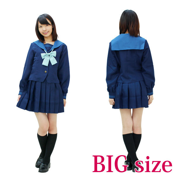 学生らしいさわやかブルー系♪襟の色が特徴的な人気の旧冬服セーラー服(BIGサイズ)。