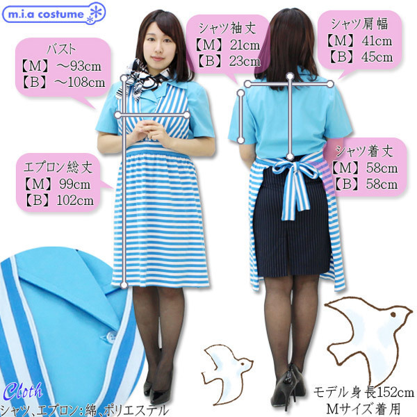 爽やかなストライプ柄のエプロンタイプと、ジャケットやシャツ、スカート、スカーフなどがついたCAコスチュームの2種類のセット♪気分やシチュエーションに合わせ切り替えて楽しんで◎