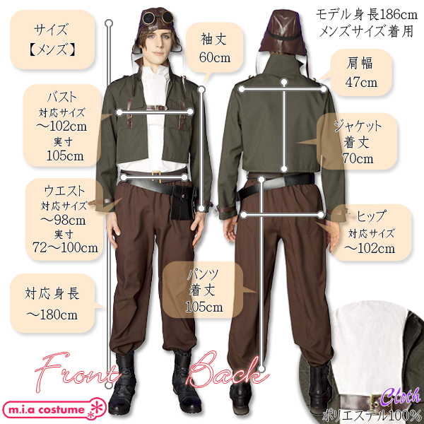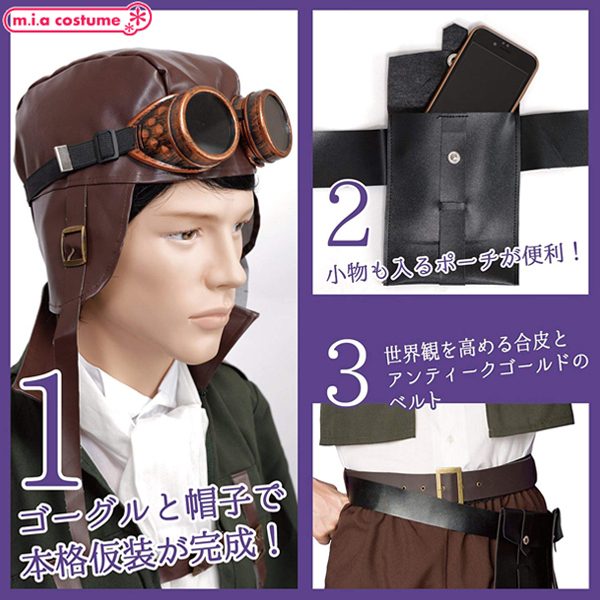 携帯や小物が入る機能的なポーチや雰囲気高まるゴーグルなど、コスプレ小物もセットになったお得な衣装♪映画やアニメのキャラクターになった気分で飛行士になりきろう!