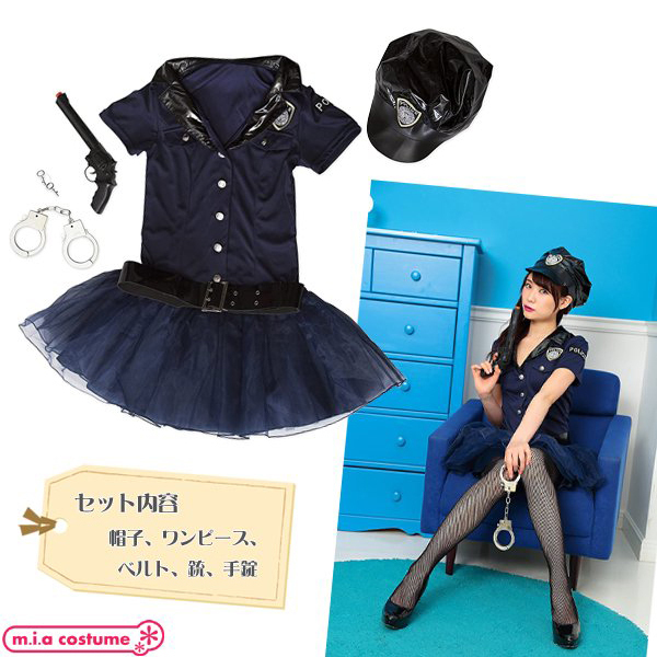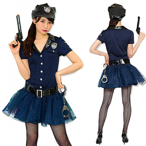 オーガンジーのふんわりスカートで可愛く決める!手錠や帽子など小物が付属したネイビーカラーのポリスコスプレ5点セット。