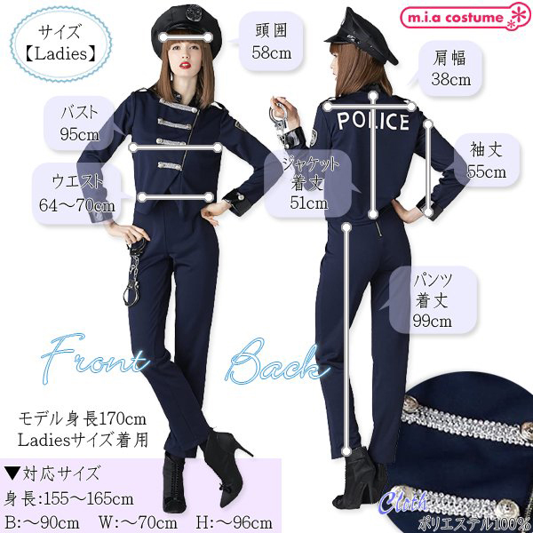 パンツタイプだから挑戦しやすいスタイリッシュポリス!ありそうでなかったロングパンツタイプのポリスコスチュームで、ストレッチ素材だから着やすいです♪ナポレオン風ジャケットと細みのパンツが、スタイリッシュなデザインです。