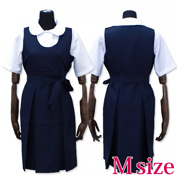 セット内容は前ボタン式のブラウスにジャンバースカート、ベルトと充実していて本物と見分けがつかないくらいに完璧な仕上がりとなっています!合わせるソックスはやっぱりリブハイソックスかベタハイソックスですよね♪
