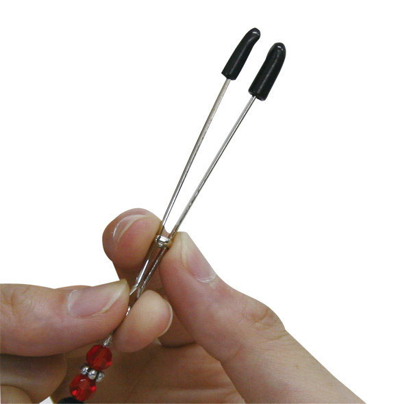 ソフトでもハードでも、好みの強さで思いのままに。先端にラバーコーティングを施した乳首用クリップ。ラバー加工は皮膚を傷めにくい上、滑り止めの役割も。クリップにはリングが通されていて、スライドさせることで強弱の調節が可能。ゆらゆらと揺れるビーズで、振動による刺激と見た目の美しさも兼ね備えたボディアクセサリーです。
