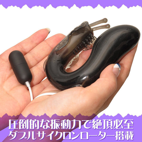 超強力な二点責め!神技のように性感帯を刺激する、シックなブラックの二点同時責めローター。膣への挿入に適した丸みを帯びた先端と、蝶のような羽と触角突起の突いたブラシ型。優雅なU字を描く滑らか曲線で、膣とクリトリスを同時に刺激!ダブルサイクロンローターが生み出す強力振動で、あっという間に絶頂へと導く快感ローターです。単三電池×2本付属。