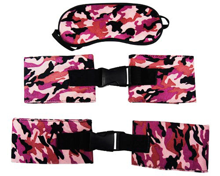 ●初めての女性でも抵抗なく使えるピンクカラー●アイマスク・ハンドカフス・フットカフスの拘束グッズ3点セット●手枷&足枷はジョイント付き●「手と手」「手と足」で拘束したりと組み合わせは自由。
