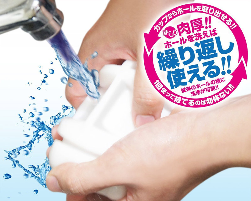 カップから肉厚ホールを取り出して洗浄!何回も使える黒いオナカップ。
