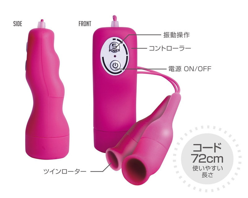 従来の強力振動を遥かに超えた「激」モードで絶頂体験!MAX15000回転のピンポイント責めで、連続アクメ地獄へと陥れるダブルローター(ピンク)。