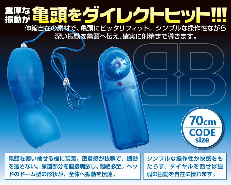 初心者も上級者も、誰もが大満足間違いなし!尿道をピンポイントに刺激する亀頭オナニー専用マッサージャー。●鮮やかなブルーカラー●サック部:伸縮素材を使用●しっかりフィットし尿道部分を直接刺激●無段階ダイヤルスイッチ●扱いやすい約70pのロングコード●単三電池2本使用。一度体験するとこの快感にどっぷりハマる!悶絶必至の最強電動オナホールです。