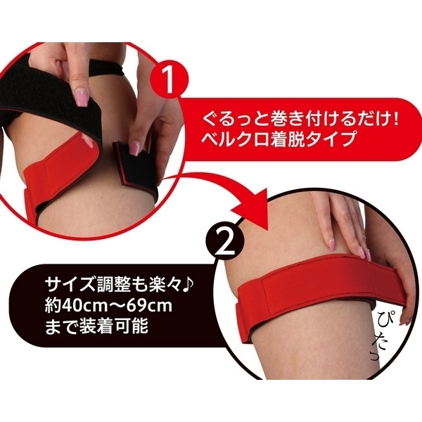 太ももにクルっと巻いてローターをポケットに差し込むだけの簡単仕様!マジックテープ式なのでサイズ調整も楽々です。