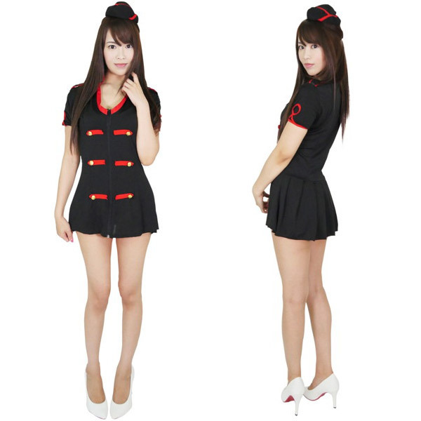 赤×黒ワンピースとキャップ、セクシーなTバックがセットになったセクシーデザインのキャビンアテンダント衣装。パーティーやイベントにだってバッチリ♪プチプラで気軽に楽しめる『コスらぶ☆』のコスチュームです。サイズはおおよその目安となりますので、表記サイズを基準に前後でお考えください。