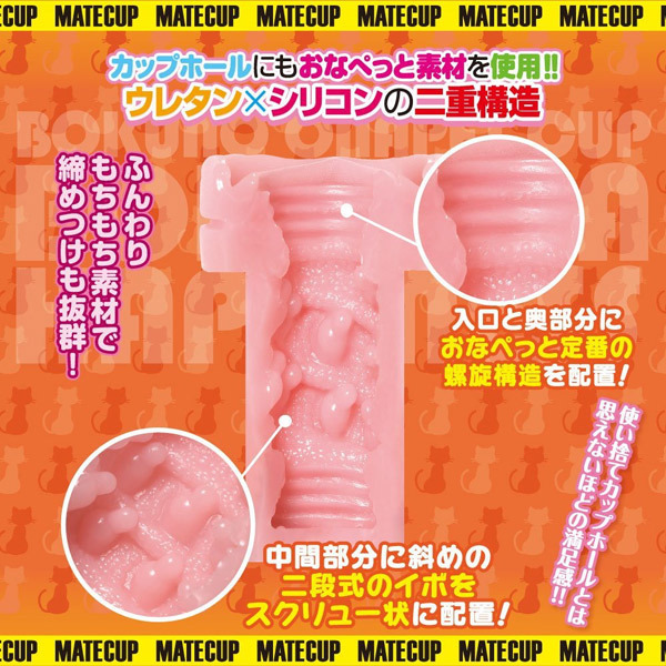 メイトのおなぺっと素材×ウレタンスポンジの二重構造!入口と奥にはおなぺっと定番の螺旋構造を配置!さらに中間部に斜めの二段イボをスクリュー状に配置。