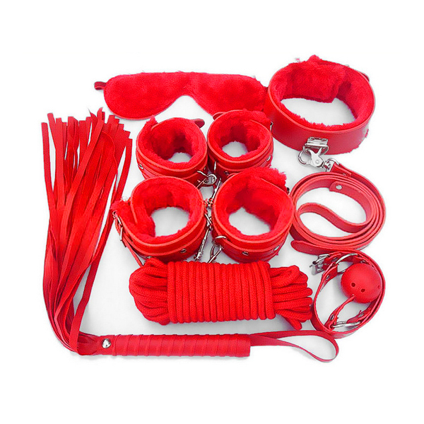 1セットで即SMプレイが楽しめるお得なセット!アイマスクや手枷、足枷の裏側はふんわり素材でつけ心地良し。首輪にはリードが付いてより主従関係が明確に。高級感のあるレザー調の質感でムードを壊しません。レッド