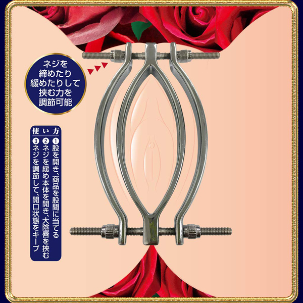 大陰唇を開いて挟んでそのまま固定!!究極の羞恥プレイが楽しめるSMグッズが登場!!開いたあそこを眺めたり、じっくり責めたり、そのまま放置したり…使い方はあなた次第。