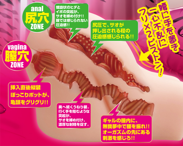 芸術的な曲線描くデカ尻に中出しファック!前後味わえるリアル造形の非貫通オナホ。生々しい見た目と挿入感に腰を動かさずにはいられない!螺旋ヒダとイボ突起がギュギュッと締め付ける尻穴&縦横ヒダ続く刺激的な膣穴の2穴仕様♪1800gの大ボリュームサイズで体感するギャルの挑発的内部を思う存分楽しもう!ローション付