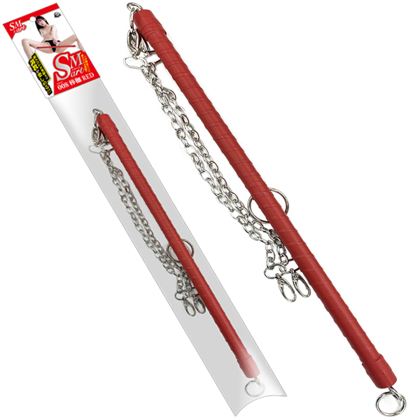 シリーズの組み合わせ自在!いろんな拘束具を繋ぐことができる50cmの棒枷。赤の合皮がエロティック!両先端や中ほどのリングに、同じジョイント式SM拘束シリーズを組み合わせて楽しめるSMグッズです。40cmのフックメタルチェーン×2本付属で強制開脚などのM調教に大活躍!あなたのイマジネーションを刺激する応用度の高いSMグッズです。